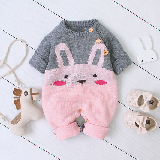 Baby 1pcs Cartton Bunny Graphic Contrast Design Shoulder Button Design Knitted Romper