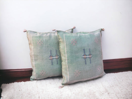 Cactus Silk Pillow, Handmade Lumbar Cushion, Moroccan Sabra Decorative Pillow for Home