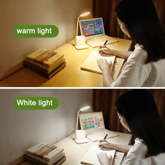 USB Rechargeable LED Desk Lamp: Touch Dimming, Phone Holder, Fan, Brush Pot