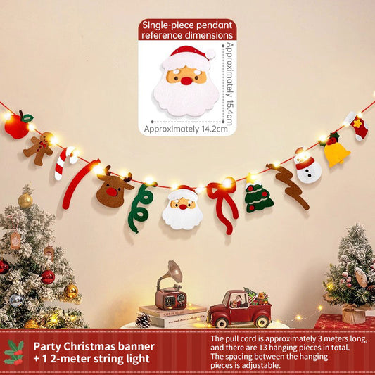 Handmade Pull String Flag Banner, LED String Lights, Christmas Holiday Background Decor