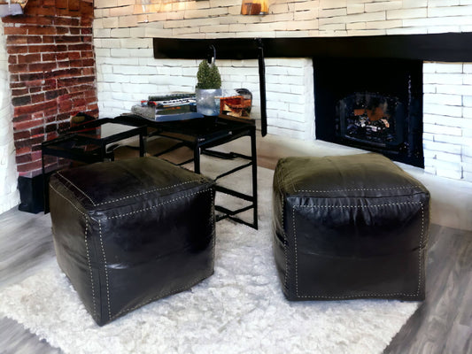 Black Square Moroccan Pouf - Timeless Elegance for Your Home