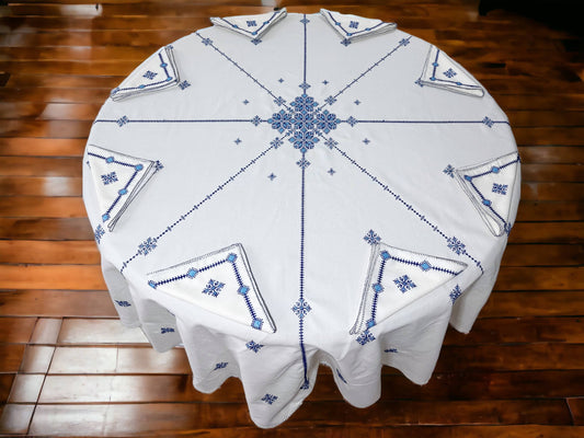 Blue Turquoise Hand Embroidered Table cloth and napkins, a magnificent decoration to add a Moroccan touch to your home.