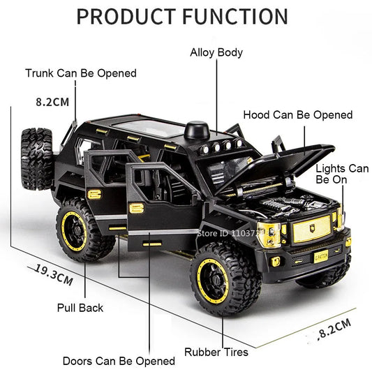 1:24 Off-road Vehicle Miniature Model Toys Alloy Diecast Police Cars Sound Light Doors Opened Pull Back Rubber Tires Kids Gifts