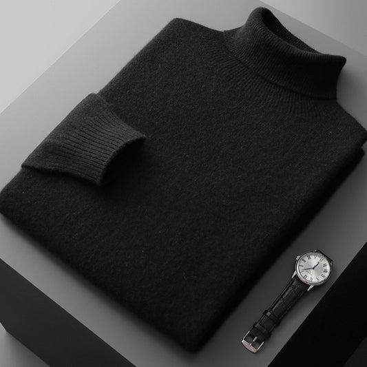Men's high collar pullover sweater for autumn and winter, loose knit base sweater for men