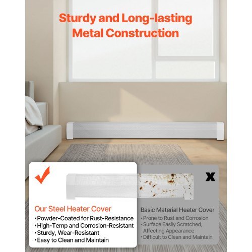 Baseboard Heater Covers, Premium Series 6 ft Standard Electric Heating Unit Front Cover for Home Improvement, Heavy-duty Steel, Easy Installation for Bedroom Replacing Old Cover, White