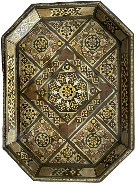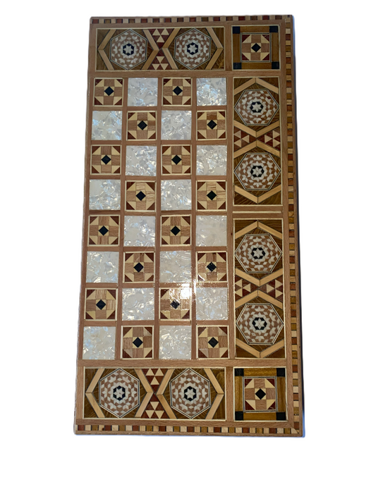 Vintage Mosaic Wooden Inlaid Marquetry Box Backgammon Set