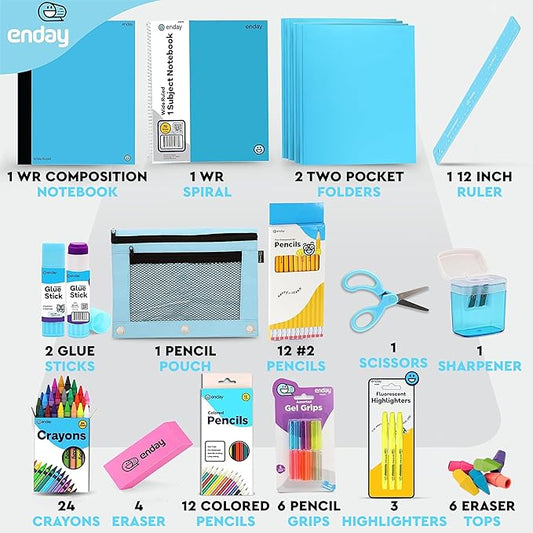 Enday Back to School Supplies for Kids, Blue School Supply Box Grades K-5, Premium Quality Kids School Supplies Kit, Kindergarten School Supplies for Girls and Boys, 78 Piece Set