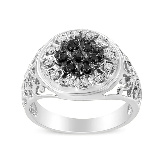 .925 Sterling Silver 1/4 Cttw White and Black Treated Diamond Halo Cluster Ring for Men (I-J Color, I3 Clarity)