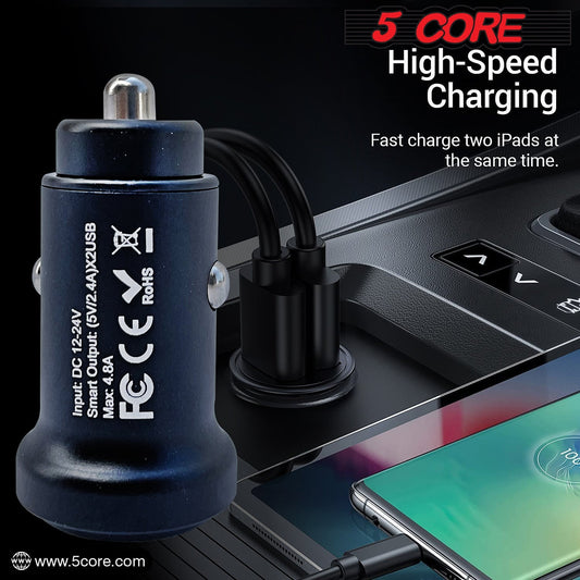 5Core USB Car Charger Cigarette Lighter Dual USB Port Adapter 12/24 V Fast Charging