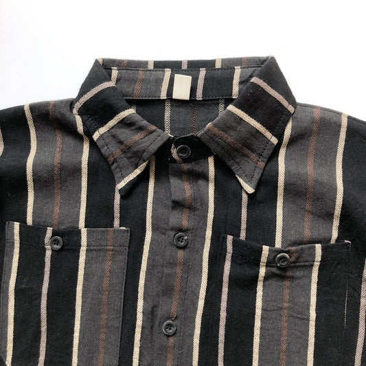 Baby Fashion Striped Pattern Lapel Design Single Breasted Shirt