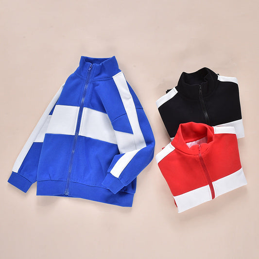 Baby Color Matching Pattern Zipper Front Design Cotton Coat