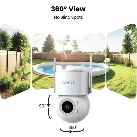 AOSU 5MP WiFi Camera Outdoor 360° View PTZ Smart Security Camera Auto Tracking 2-way Audio Wireless CCTV Camera Support Alex