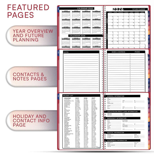 2025 Appointment Book & Planner 6.5x8.5 inch Maroon Color Large Tabbed Daily
