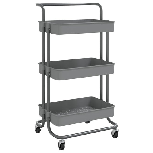 3-Tier Kitchen Trolley Gray 16.5"x13.8"x33.5" Iron and ABS