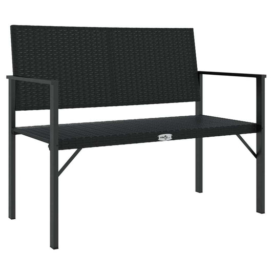 Garden Bench Black PE Rattan, Powder-Coated Steel Medium Durable