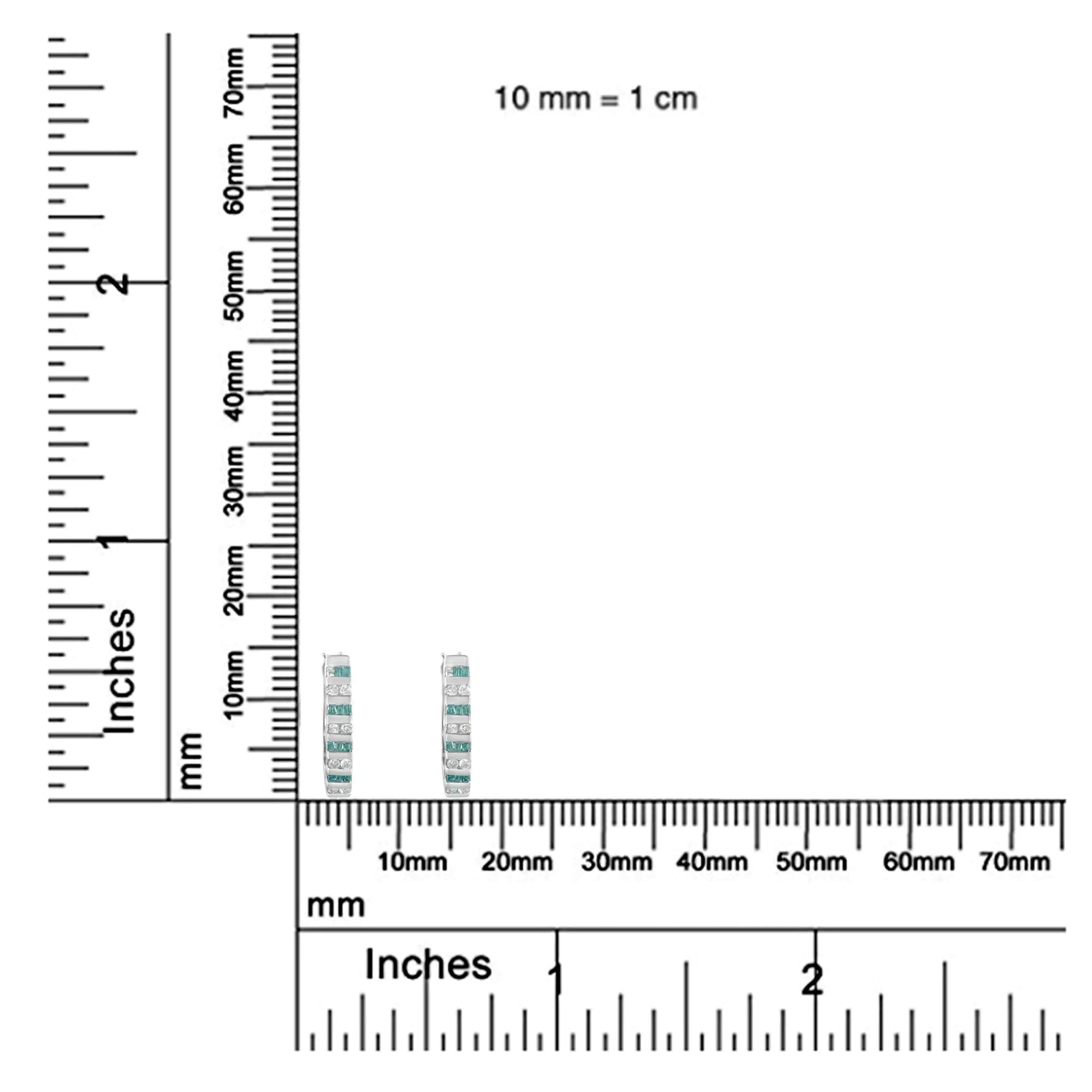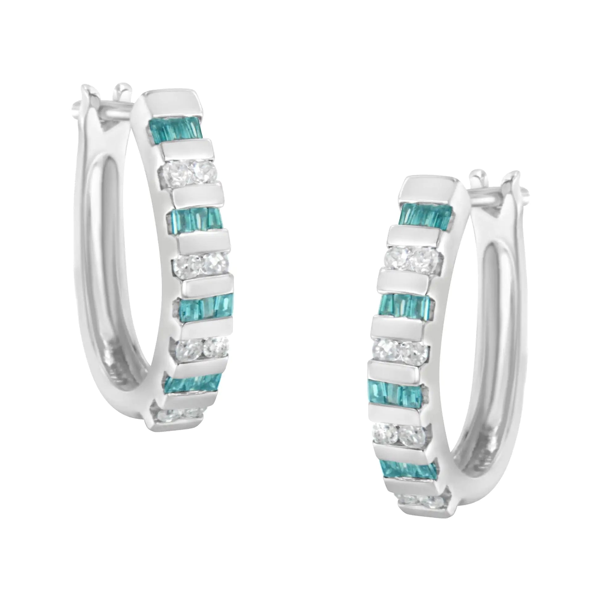 10k White Gold Round and Blue Baguette Diamond Hoop Earrings (0.50 cttw, I-J Color, I2-I3 Clarity)