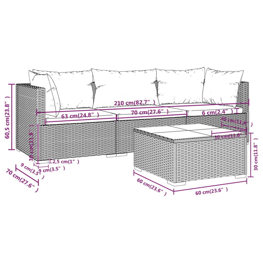 This 4 Piece Garden Lounge Set with Cushions brings modern design and practicality, making it a lovely addition to any outdoor area. Made from quality materials, it gives a friendly vibe for patios, balconies, and gardens, blending seamlessly with your decor while keeping you comfy in the sun or shade.