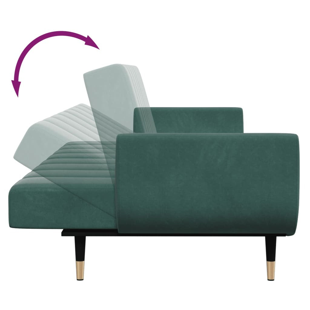 Sofa Bed Dark Green Velvet, Wood, Metal Standard