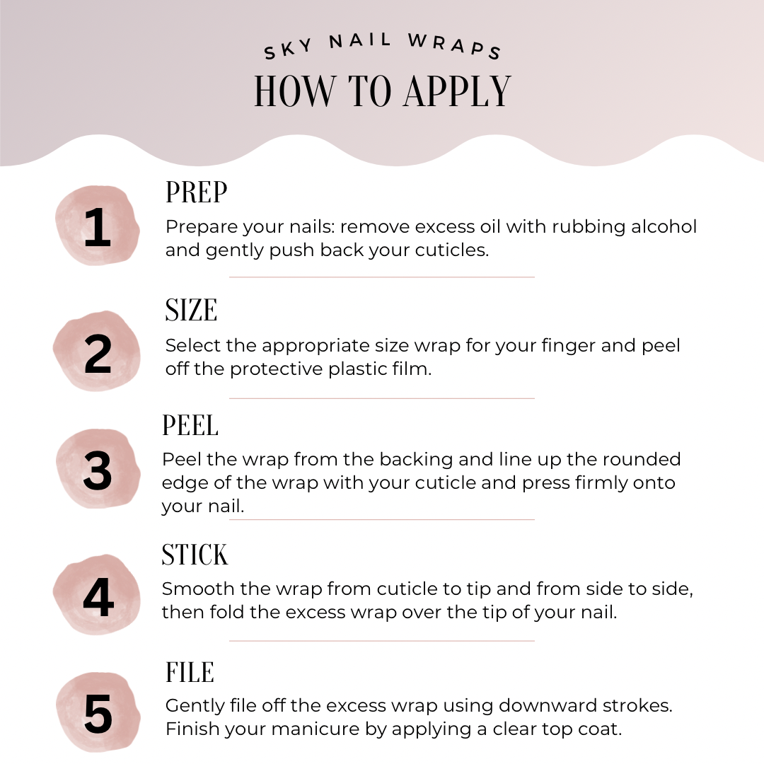 Indulge in 100% non-toxic, 10-free nail wraps that require no drying time and last up to 7 days. No need for glue or heat, the application and removal process is effortless. These sustainable strips can be used on natural nails, acrylic, gel, and shellac, and come in a variety of colors (please note that colors may vary due to lighting and resolution). The lasting power depends on your application technique and how much you use your hands, so show them some love!