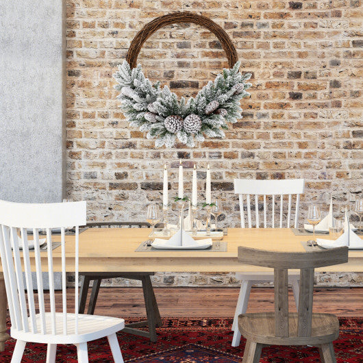 Pre-lit Snow Flocked Artificial Christmas Wreath with 8 Pine Cones and 35 LED Lights - Color: Multicolor