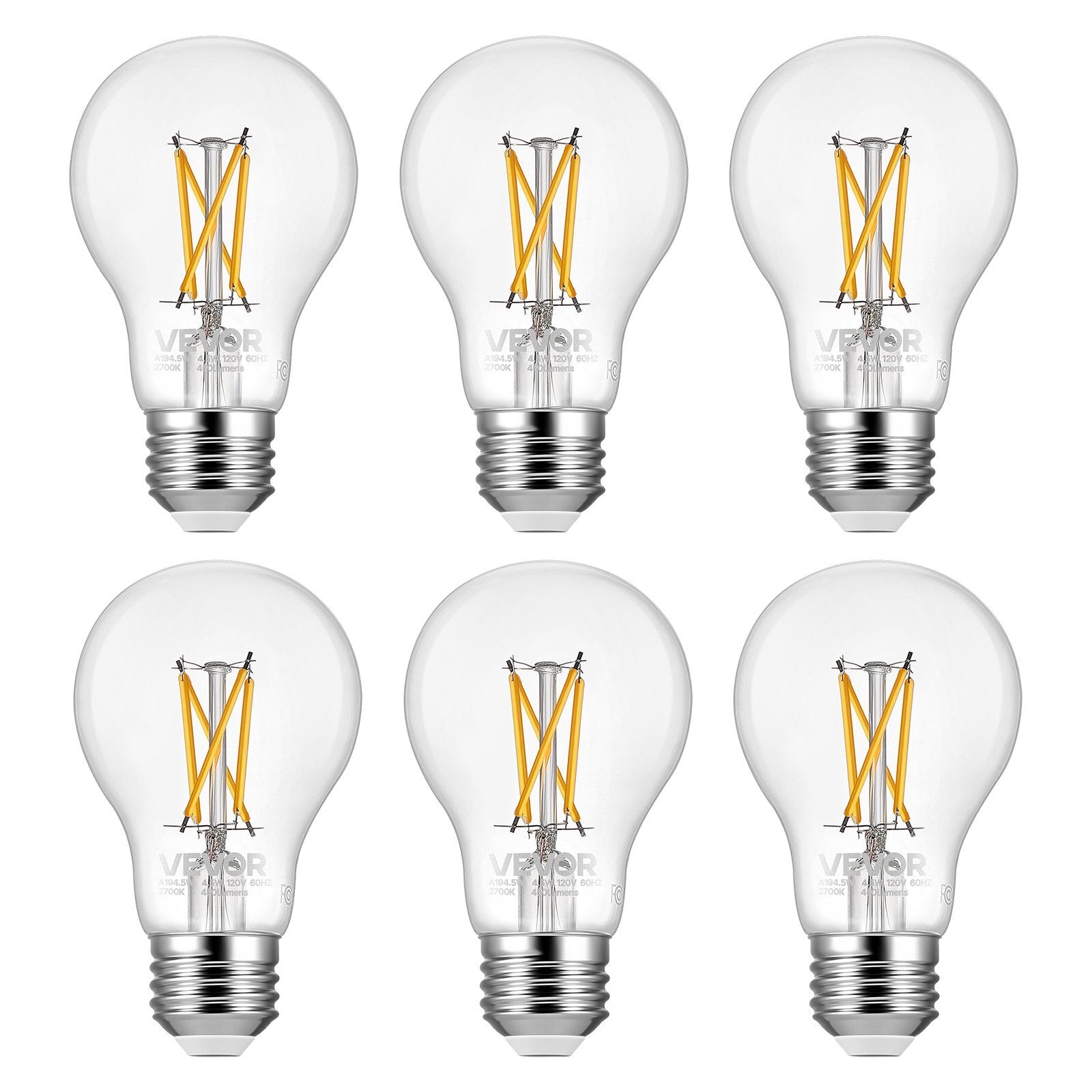 VEVOR 6 Pack Edison Bulbs LED, A19 Vintage Edison Light Bulbs, 4.5WDimmable 450 Lumens, 2700K Warm White, E26 Base LED Filament Bulb,Antique Glass Style for Home, Bedroom, Office, Farmhouse,CRI80+