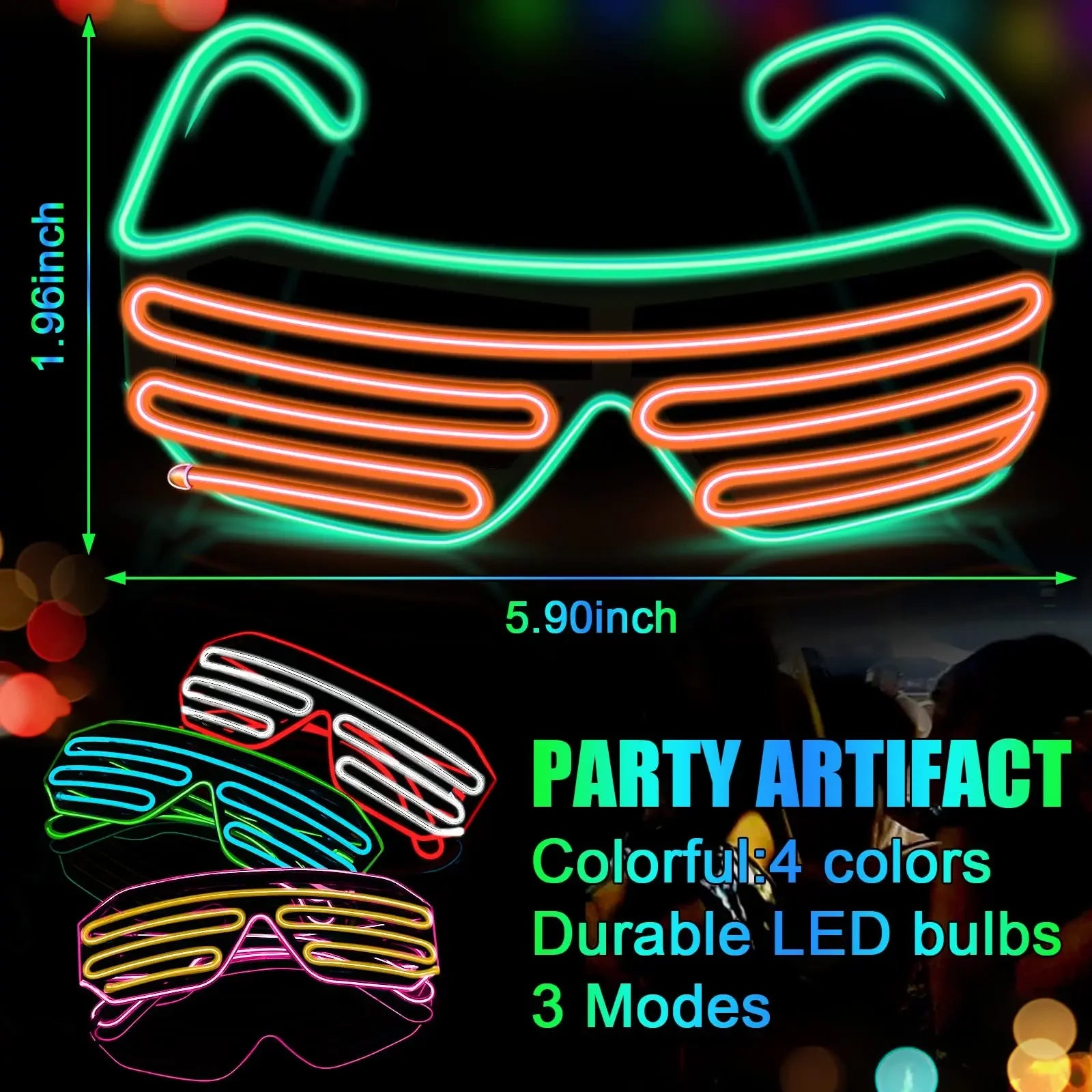 LED Wireless Glow-in-the-dark Glasses, Neon Twinkling Sunglasses, Suitable for Halloween, Christmas, Carnival Party