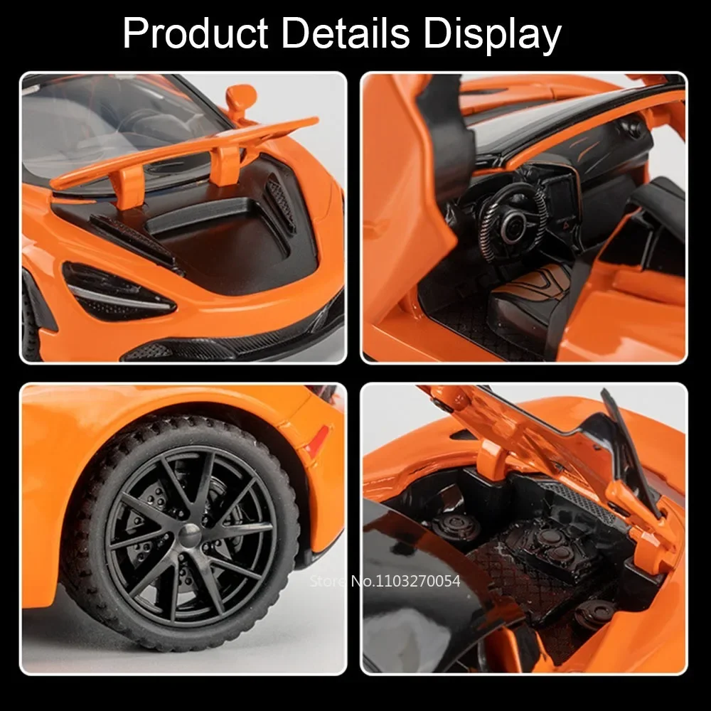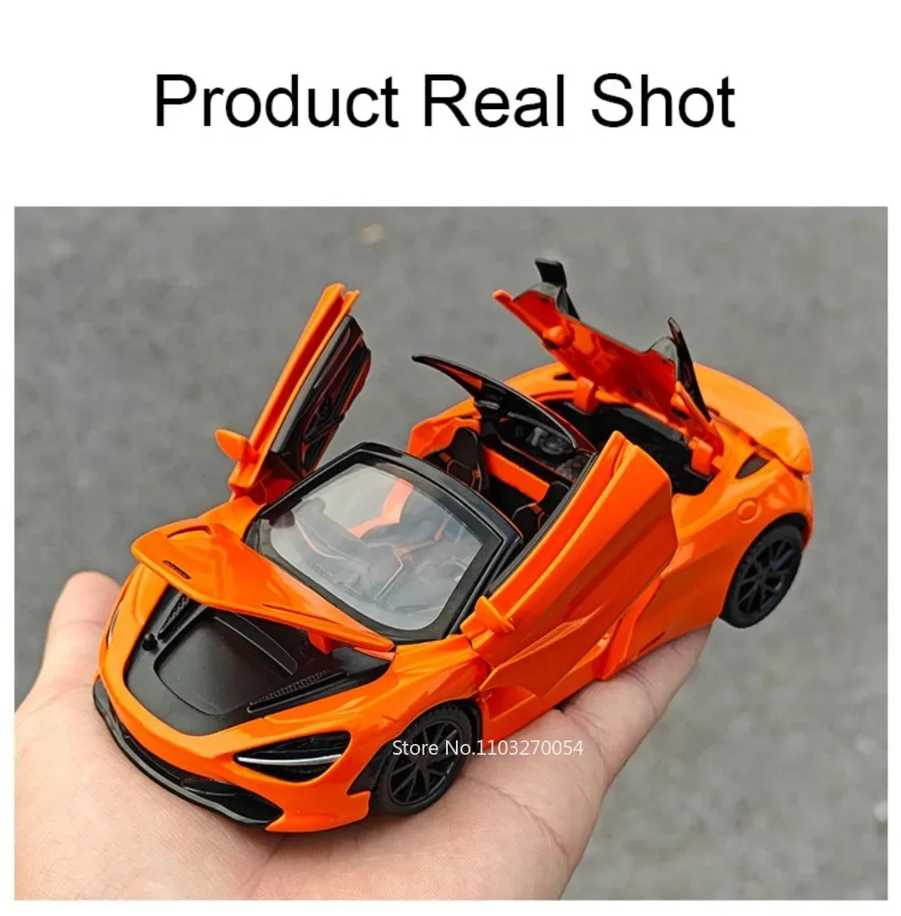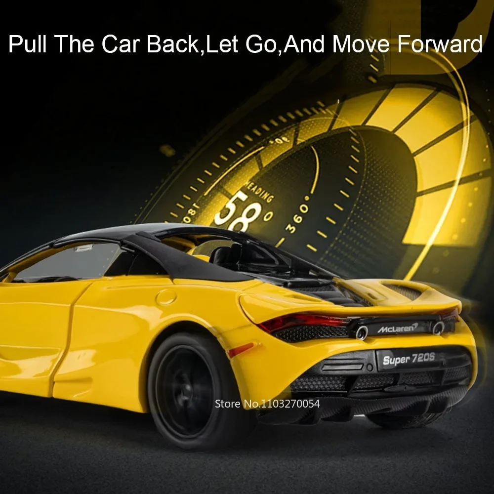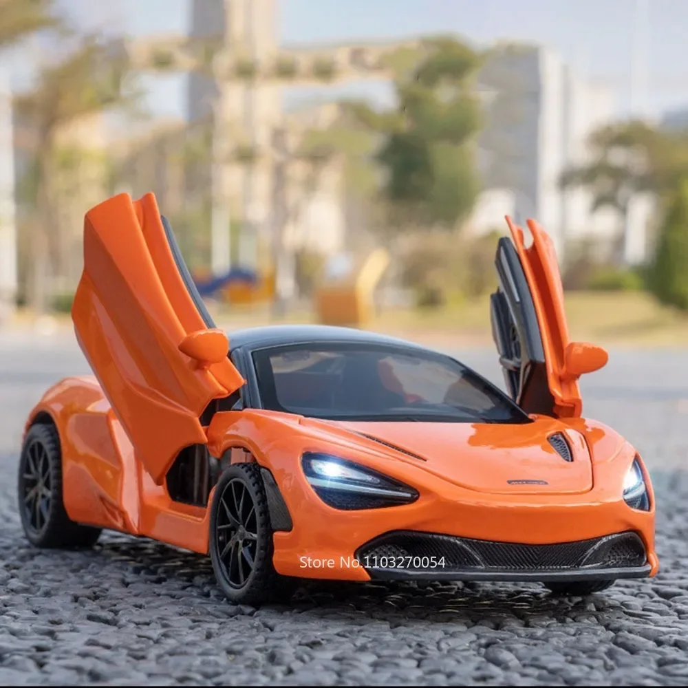1:32 720S DB12 Alloy Sports Cars Model Toys Doors Opened Sound Light Pull Back Rubber Tires Miniature Vehices Toy for Kids Gifts
