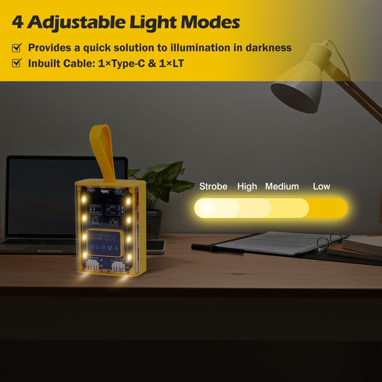 4 Light Modes: Low Light Mode, Medium Light Mode, High Light Mode, Strobe Light Mode