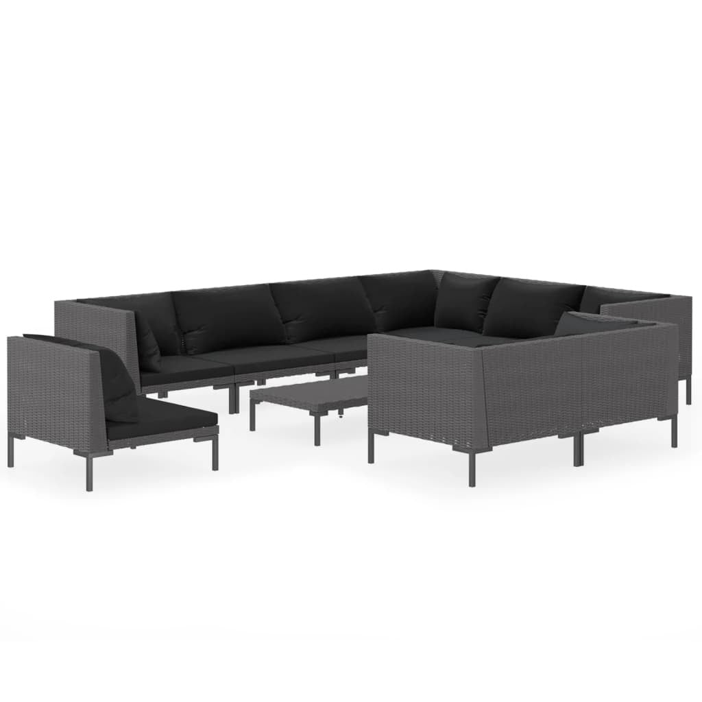 This 10-piece garden lounge set is the perfect modern addition for your patio, terrace, or garden. Made from premium poly rattan and tough powder-coated steel, it boasts a sleek dark grey finish that looks great and lasts long. Ideal for socializing or relaxed afternoons, it comfortably seats up to nine people, letting you enjoy the outdoors in style and comfort.