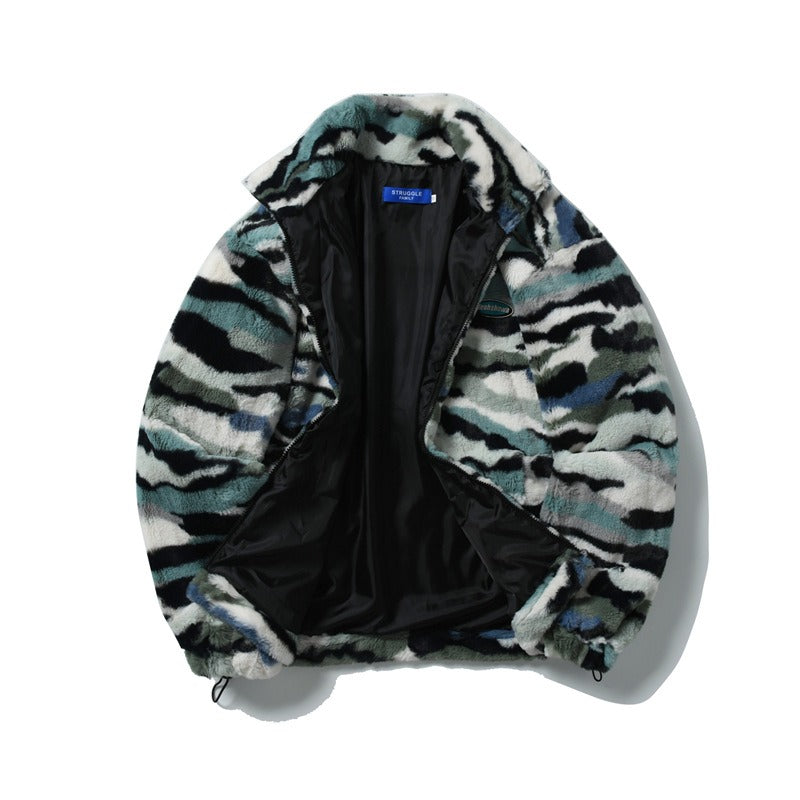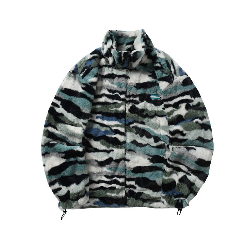 Autumn and winter retro camouflage imitation rabbit plush jacket for men and women loose casual versatile warm cotton jacket