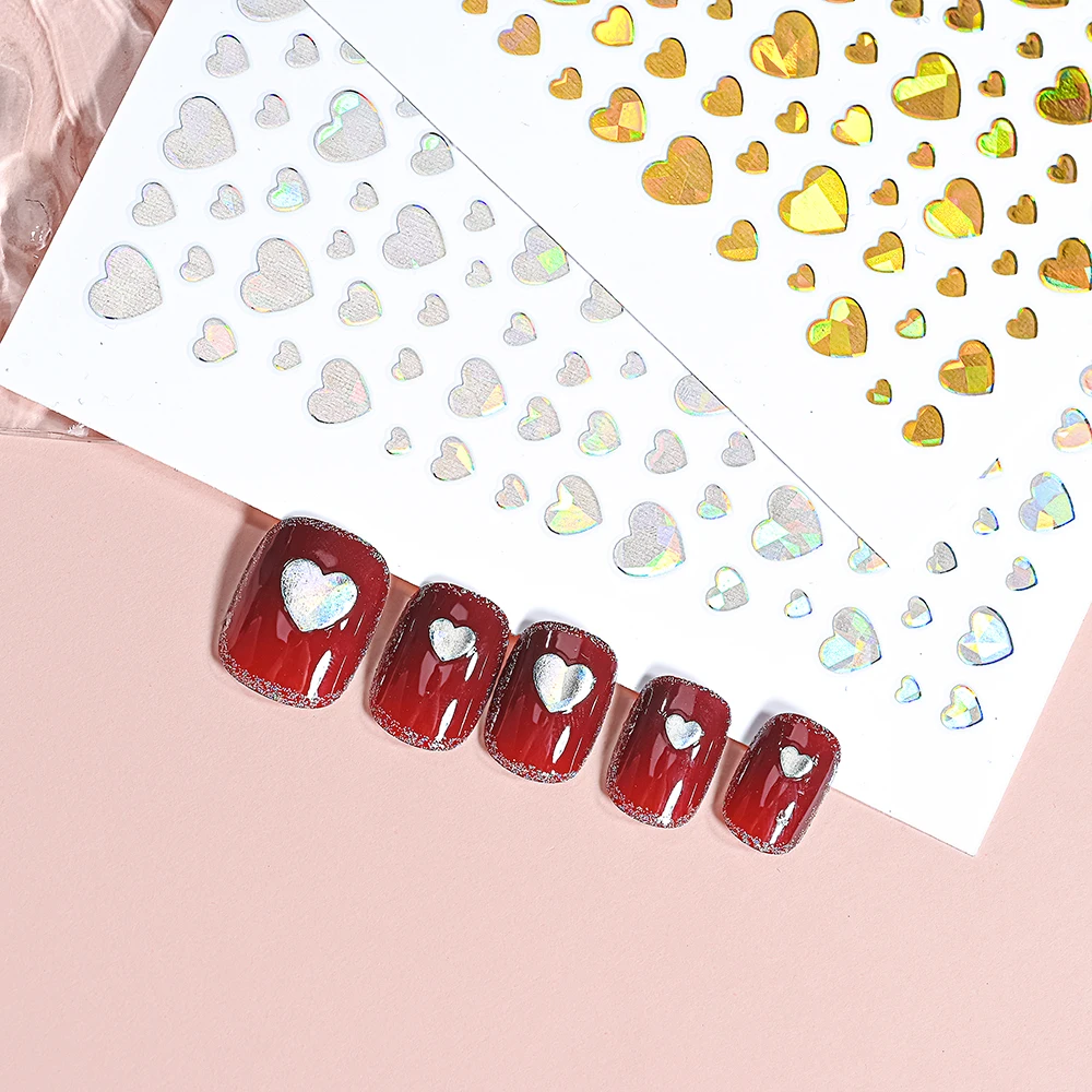 Color: WHITE - 1Pcs 3D Heart Love Nail Sticker Laser Colorful Self-Adhesive Slider Decals 8*10cm Valentines Day Sticker for Nail Decorations #N