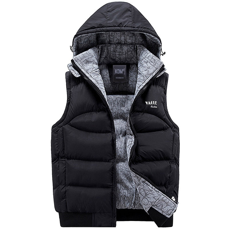 Fashion Sleeveless Jacket 2019 Men Thickening 100% Cotton Vest Hat Hooded Warm Vest Winter Waistcoat Men Casual Windbreaker