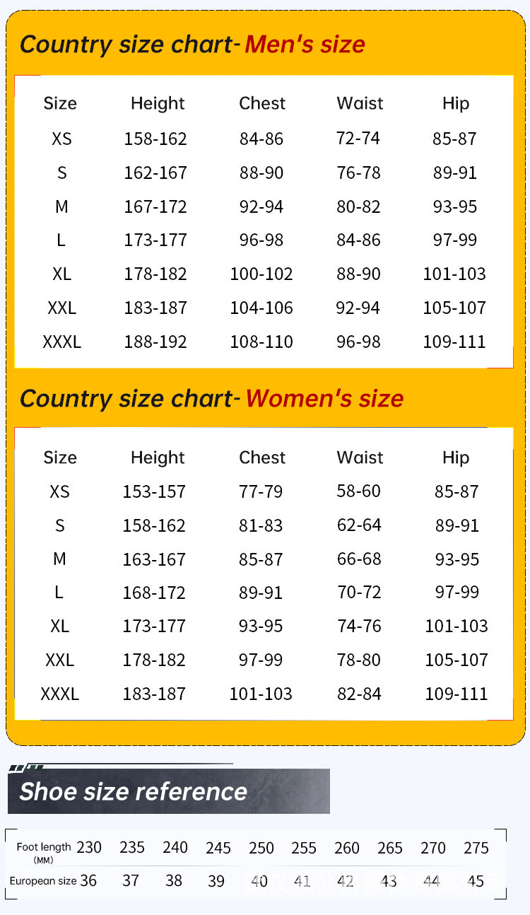 Size: European XS, European S, European M, European L, European XL, European XXL, European XXXL,