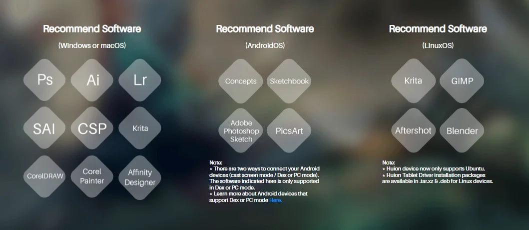 Gamut: Kamvas Pro 16 (4K):120% sRGB; Kamvas Pro 16 Plus (4K):145% sRGB