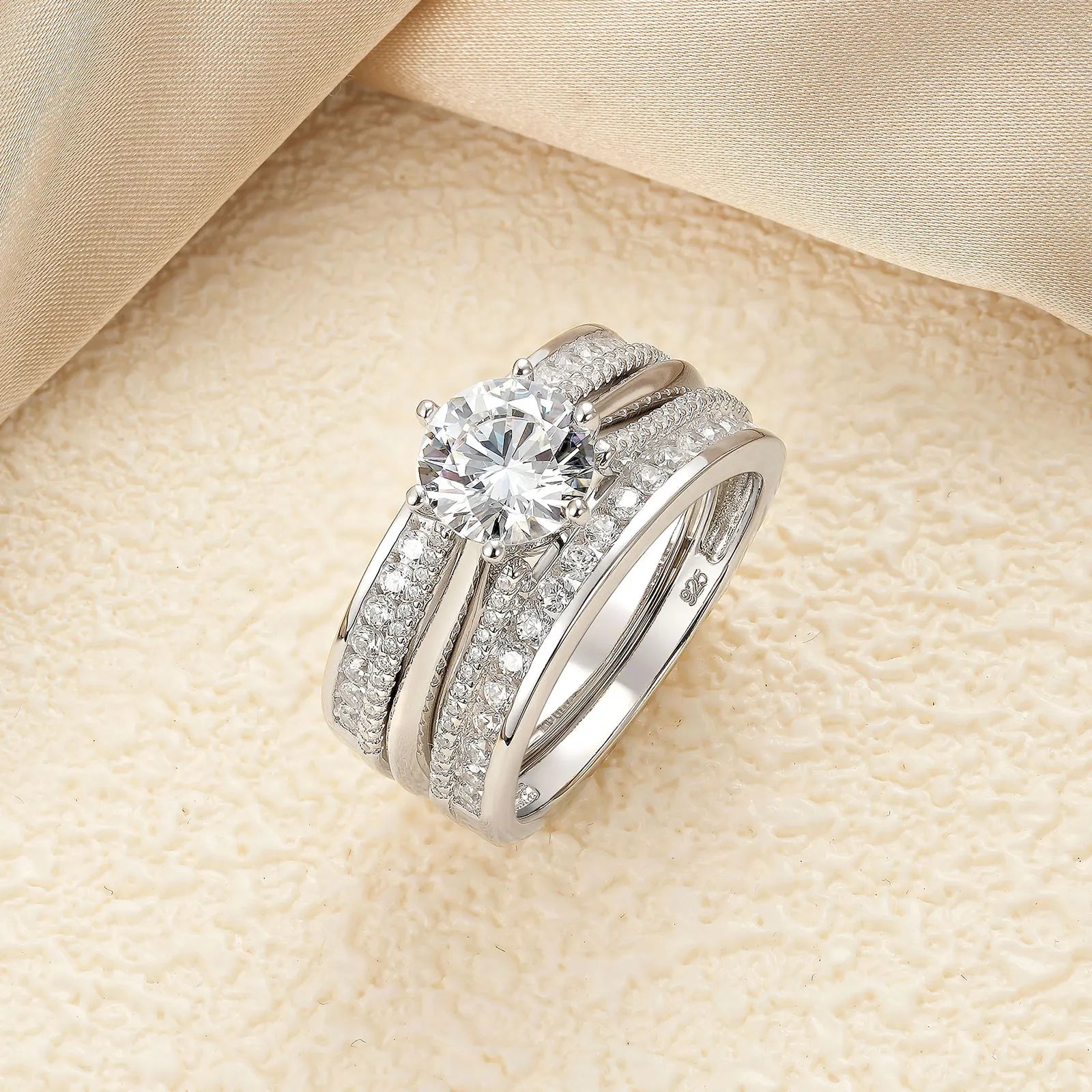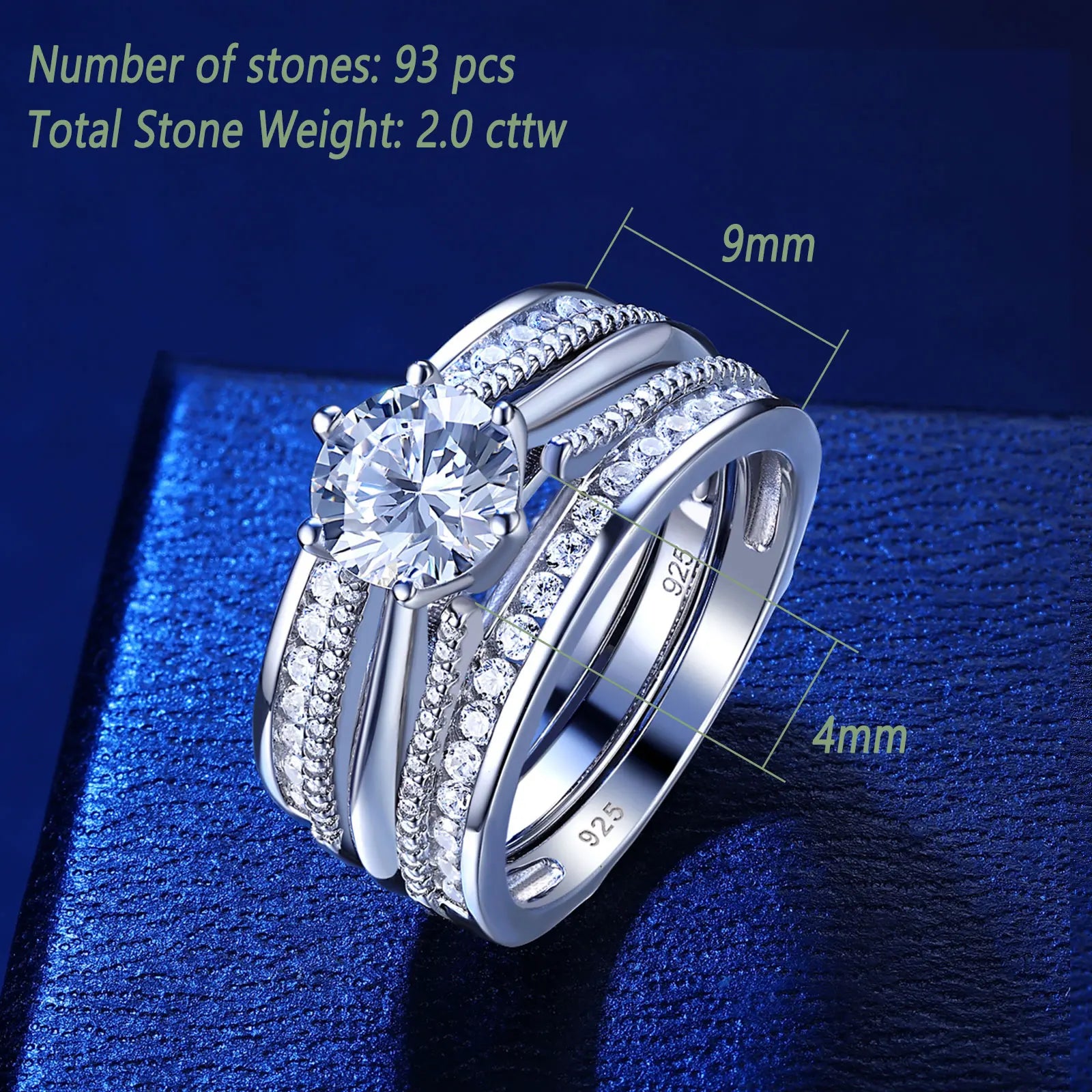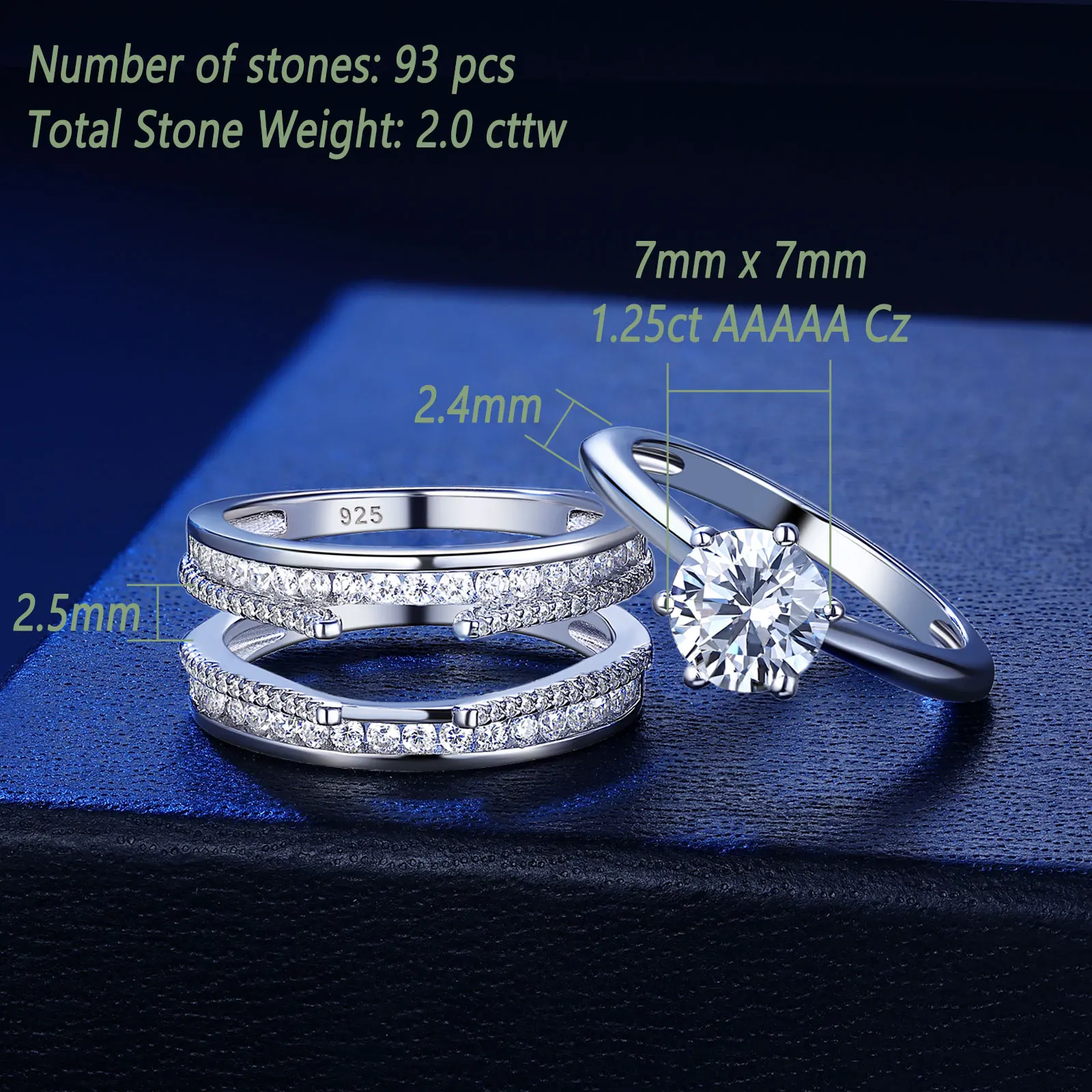 Newshe 2 Pcs Wedding Ring Set 925 Sterling Silver Solitaire Round CZ Engagement Rings for Women Luxury Jewelry