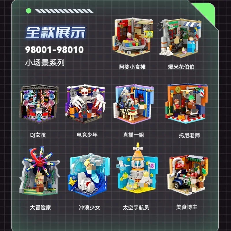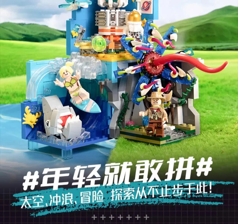 Scene Building Blocks Mini Small Particles Surfing Adventure Exploration Series Model Ornaments Splicing Toys Halloween Gift