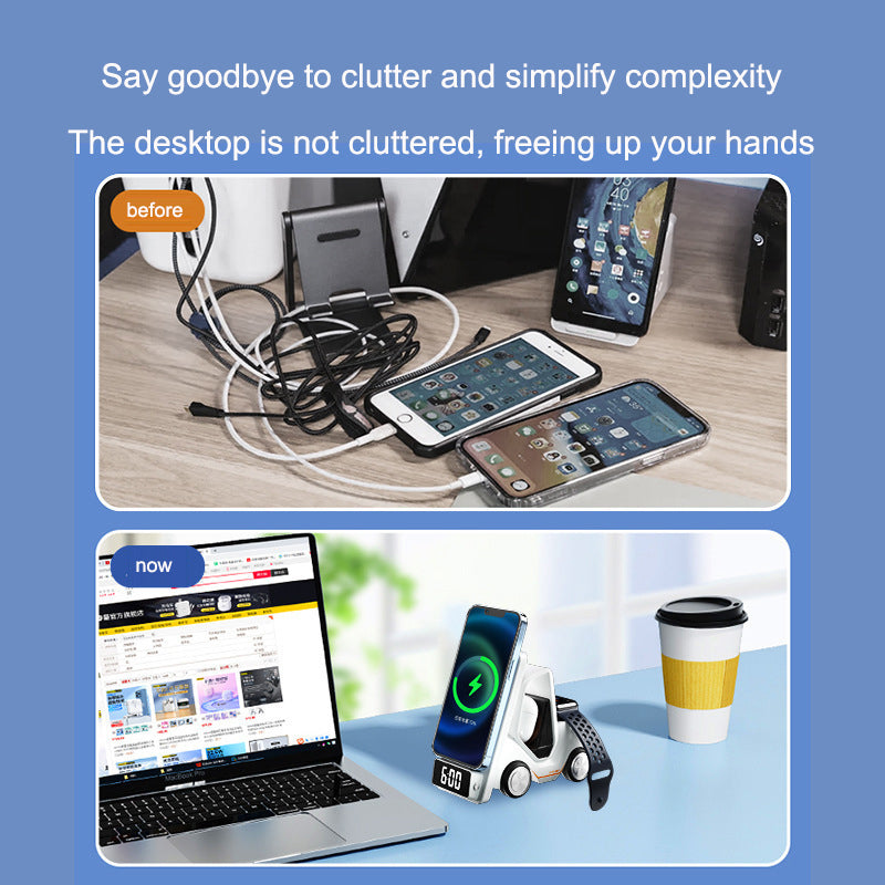 Application Range: Wireless charging for mobile phones, wireless charging for Apple Watch series, wireless charging for Apple Airpods headphones, clock display, ambient light