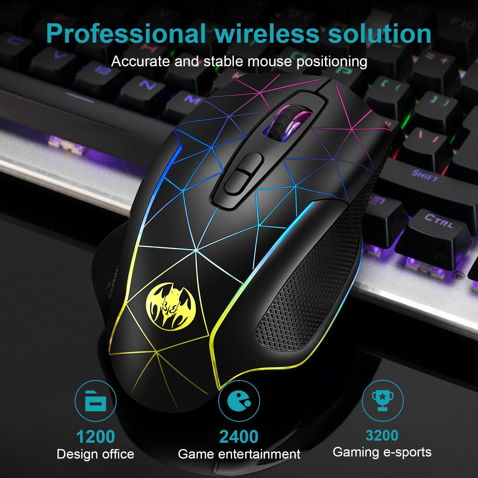 Wireless charging illuminated gaming mouse with anti sleep function automatic cursor movement to prevent computer screen lock
